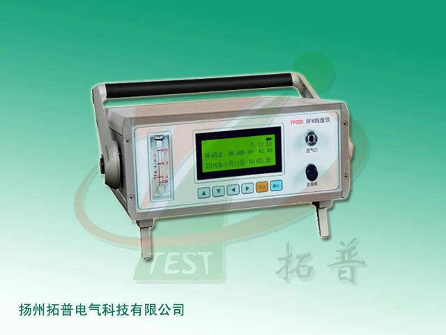 TPCDC型SF6氣體純度分析儀主要用于測量SF6空氣SF6/N2混合氣體的SF6氣體純度。儀器具有電池充電指示燈,內置充電器。探測組件可快速準確地測出SF6純度,一般情況下,其壽命可達十年。該SF6氣體純度分析儀采樣數據真實、可靠。儀器采用液晶顯示屏顯示,界面美觀大方,操作十分方便。該儀器廣泛應用于檢測SF6設備(電纜、開關)中的SF6氣體純度。